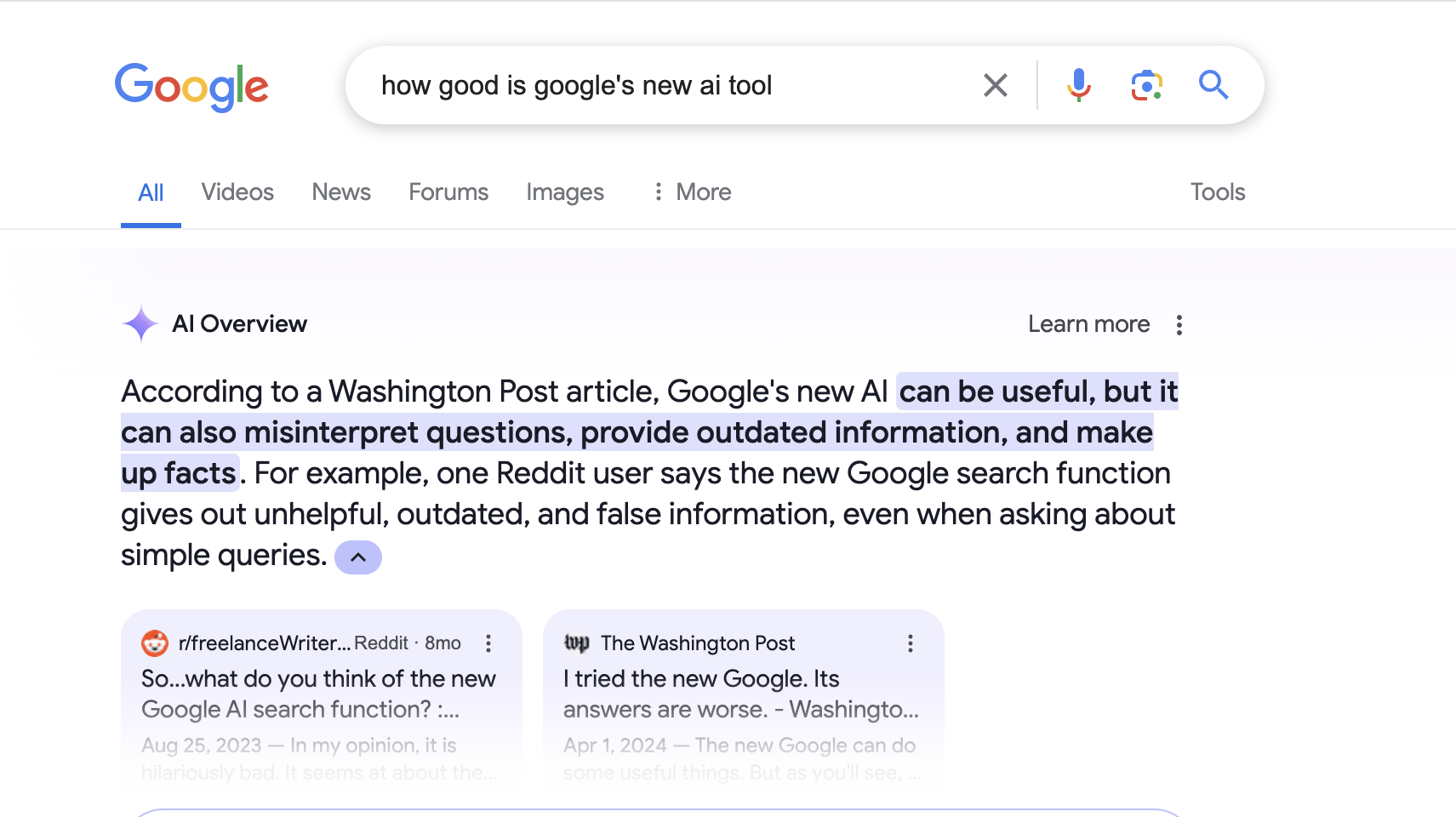 Clear structure. Both systems reward content organized with proper headings, logical hierarchy, and semantic HTML. Bullet points, FAQs, and direct answers to specific questions help both Google's featured snippets and AI-generated summaries.
